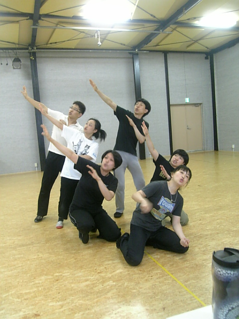 20時まで稽古場で体操をしていたチャミ、るつ、イッキー、しんちゃんを巻き込み…配ってもらったのは主に5mapのチラシ