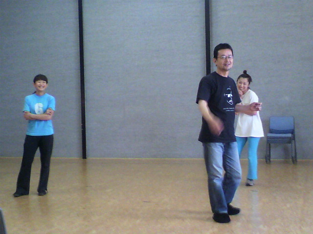本日は、10時より竹田恵子先生による体操があり、その後Aスタジオを劇場へと塗り替える、仕込みを行いました。
