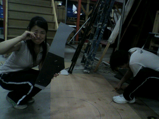 各部の細かい作業に移ります。ベニヤに色を塗ったり、段ボールを貼ったり、毛皮を梳いたり。そしてそんな作業を全て、
