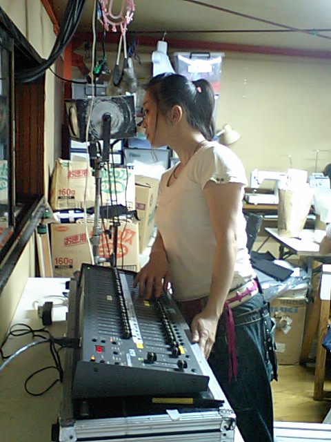 照明も、一日限りのコンサートとは思えないくらい豪華に仕込みます!佐藤チーフのもと、朋さん、まろちゃんが大活躍♪手際よく吊ったり繋いだり、華麗なワークにちひろの感嘆もひとしきりです。