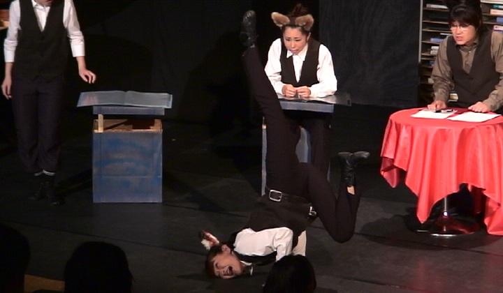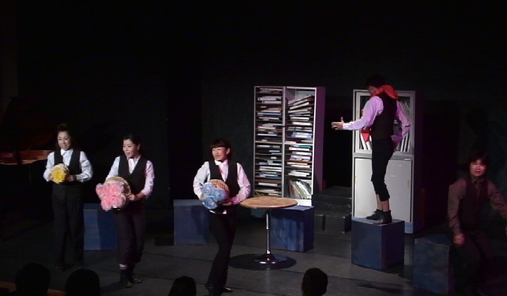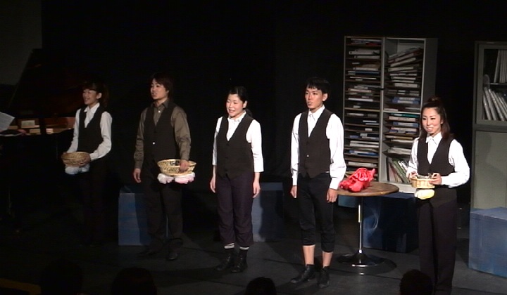 舞台はひかるちゃんを中心に、如何にお客様に快適に観ていただくかを考えます。ゆうちゃんは男前にマルチに、まどかちゃんは軽快なフットワークで、壱岐くんは背の高さと几帳面さを生かして、一流の仕事ぶりを見せてくれます。
