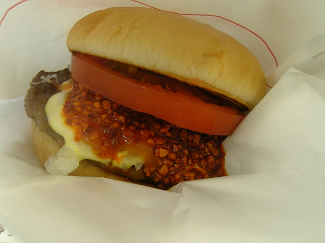 ずっしりしたパテに厚切りトマト、ラー油・サルサソース・マヨネーズが小粒のあられに絡まって、とっても食べごたえがあって美味しかったです。あられの触感をいい状態で楽しむためにも、これは絶対、できたてを食べるべき。