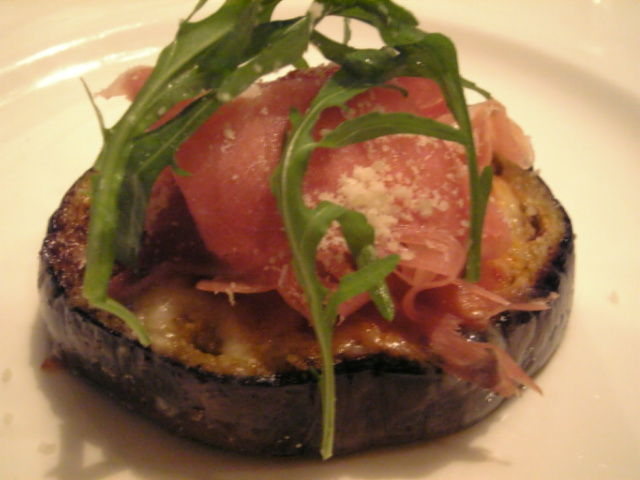 茄子のグリルに生ハムを載せて