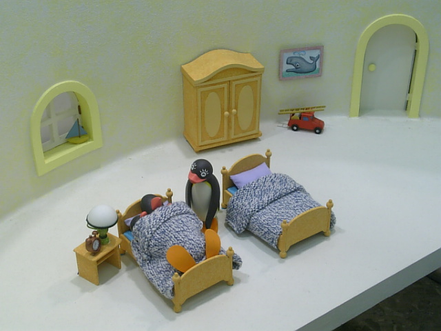 ピングーのフィギュアや、覗けるお家や、製作過程のモニターなど、興味をそそられるものがいっぱい。
