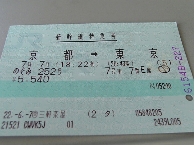 7月7日7号車7番E席!奇跡のチケット。