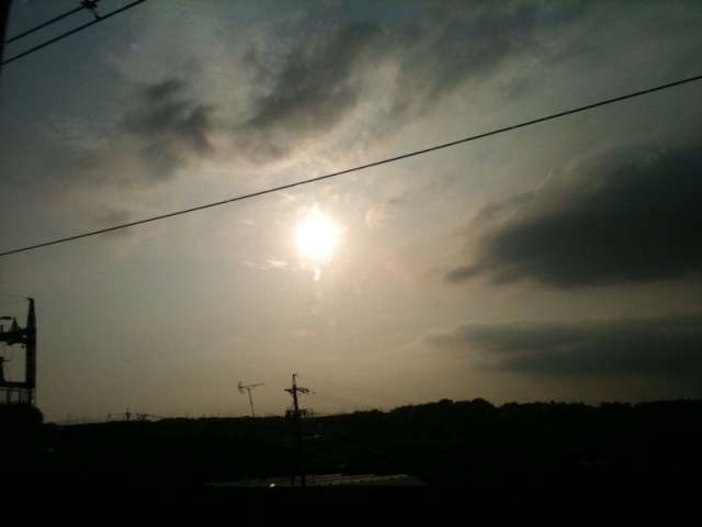 車窓からこんな太陽が見えました。